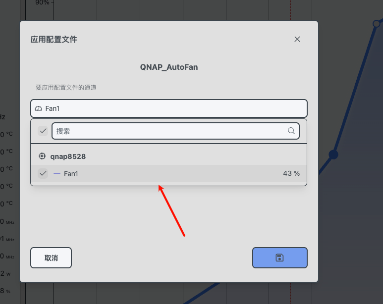 ,点击应用配置文件-下拉框选择fan1 保存。即可完成!